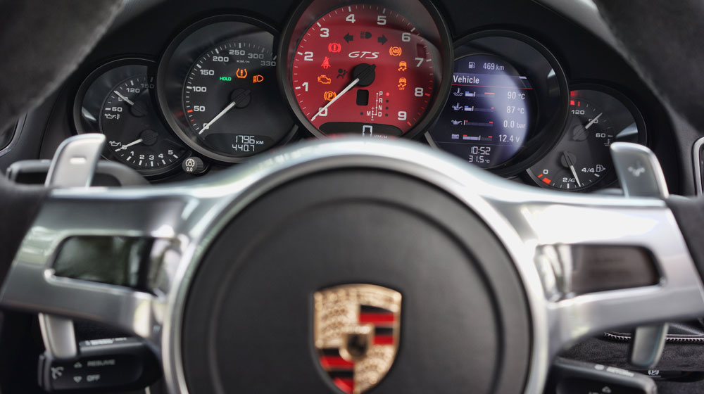 Chi tiết duy nhất mang lại chút âm hưởng cổ điển trên 911 Carrera GTS 2015 có lẽ là cụm đồng analog phong cách cũ được chia thành 5 phần khác nhau bao gồm một đồng hồ nhiệt độ dầu, một đồng hồ tốc độ, một đồng hồ vòng tua, một màn hình màu đa thông tin và một đồng hồ báo xăng.