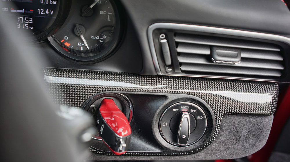 Ngược lại so với ngoại thất, nội thất chiếc Carrera 911 GTS đồng hành cùng chúng tôi lại sử dụng các đường chỉ đỏ làm điểm nhấn trên nền đen chủ đạo. Ngồi vào vị trí lái, ở phía tay trái tôi (tay lái nghịch) là bảng điều khiển với các nút bấm được bố trí hài hoà bao gồm các chức năng như chế độ Sport, Sport Plus, ổn định thân xe, thay đổi âm thanh ống xả, đóng/mở cánh gió...