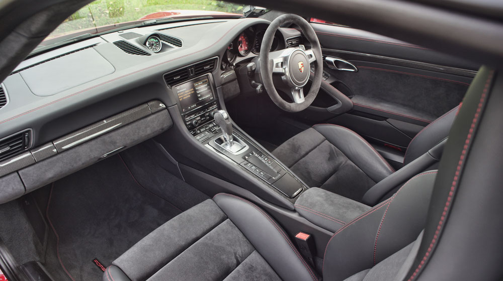 Chiếc Carrera 911 GTS đồng hành cùng chúng tôi lại sử dụng các đường chỉ đỏ làm điểm nhấn trên nền đen chủ đạo.